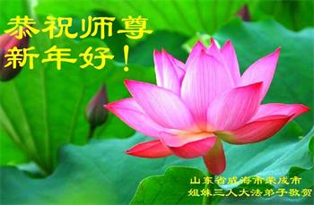 山东省威海市荣成市姐妹三位大法弟子恭祝慈悲伟大的师尊新年好!
