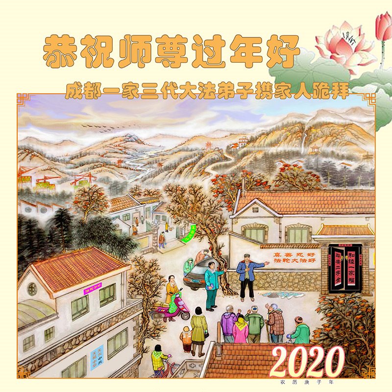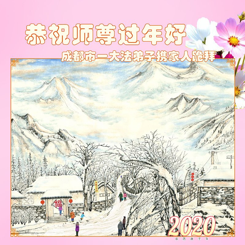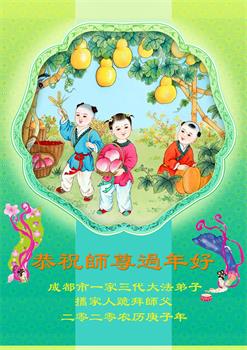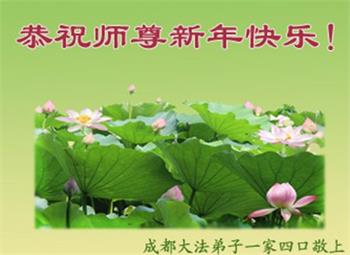 四川省成都一大法弟子携家人向慈悲伟大的师尊恭贺新禧!