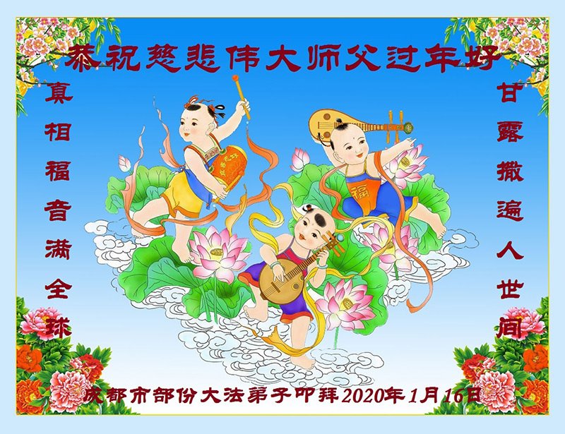 【明慧网二零二零年一月二十二日】 四川省成都部份大法弟子恭祝慈悲伟大的师父过年好!
