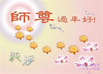 恭祝师尊新年好! 感谢师父慈悲苦度,唯有精進实修报师恩! 江苏省连云港市赣榆区全体大法弟子合十跪拜 江苏常州一个四人学法小组全体大法弟子恭祝师尊新年好!