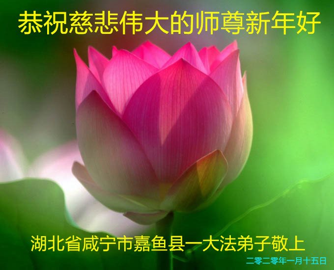 祝师父新年好! 盼望师父早日回大陆,师徒团圆,普天同庆。现在再苦弟子也要跟随师父走到底,愿天下的善良人都能得到大法的救度,感恩师父为众生的承受。 武汉大法弟子敬拜 2020年1月16日 湖北省咸宁市嘉鱼县全体大法弟子恭祝师尊新年快乐!