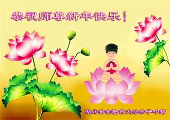 湖北省安陆市大法弟子恭祝师尊新年快乐! 湖北省安陆市大法弟子叩拜 湖北黄石市一老中青大法弟子恭祝师尊新年快乐!