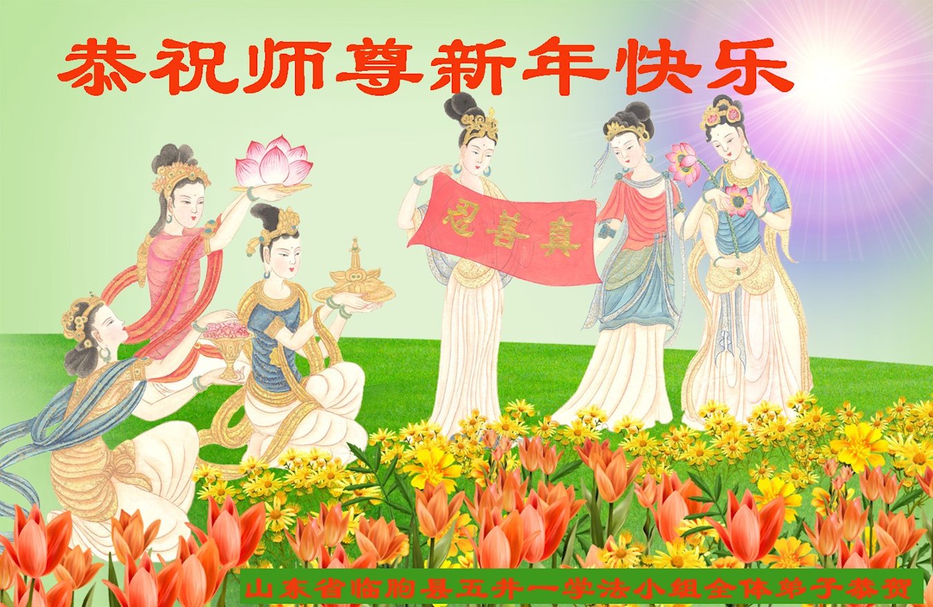 山东省潍坊市诸城市学法小组的大法弟子给师尊拜年!