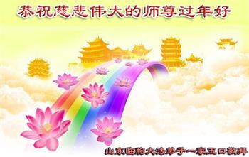 山东潍坊昌乐五家大法弟子及其家人恭祝慈悲伟大的师尊新年快乐!