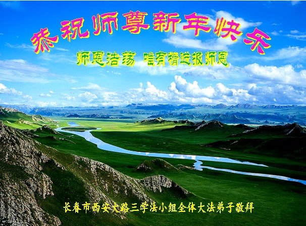 吉林省长春西安大路三学法小组全体大法弟子恭祝师尊新年快乐!感谢师尊慈悲救度!