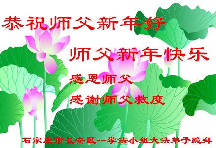 河北省石家庄一大法弟子代表在大法中受益的家人、丈夫、儿子、孙子、孙女给师父拜年!