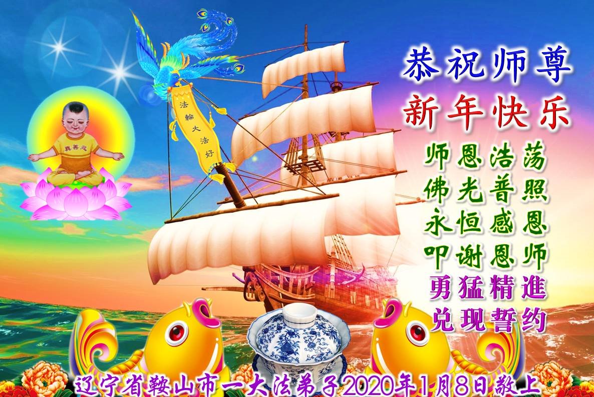 恭祝师尊新年快乐! 师恩浩荡 佛光普照 永恒感恩 叩谢恩师 勇猛精進 兑现誓约 辽宁省鞍山市一大法弟子敬上 2020年1月8日 辽宁省鞍山市孪生姐妹大法弟子恭祝慈悲伟大的师尊新年快乐!