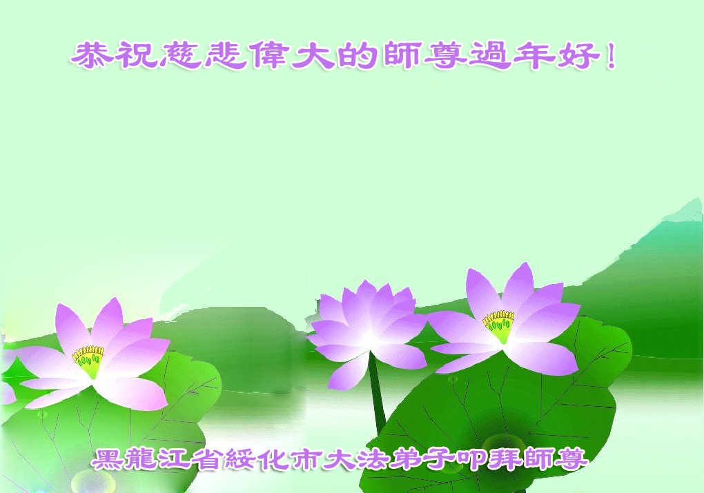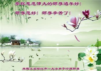 恭祝师尊新年快乐! 在新的一年里,作为大法弟子要做好三件事,让师尊多一份欣慰,少一份操劳,请师尊放心! 二零二零年一月十五日 黑龙江省绥化市大法弟子恭贺师尊新年快乐!