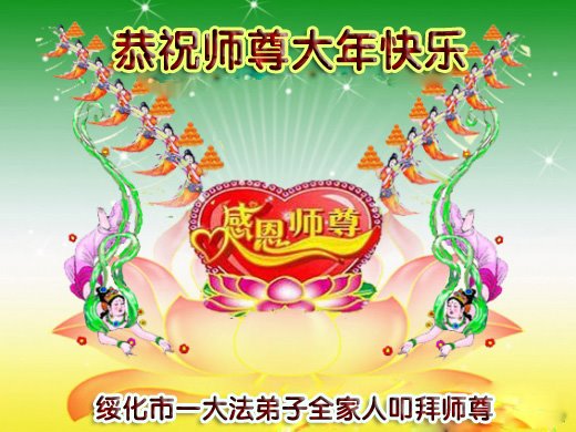 感谢师尊一直看护着弟子及对家人的保护,使我们一家人历经魔难走到今天。感谢师尊的慈悲苦度,以后好好学法、炼功,做一个合格的大法弟子。 黑龙江省绥化市一新学法小组大法弟子恭祝慈悲伟大的师尊大年快乐!