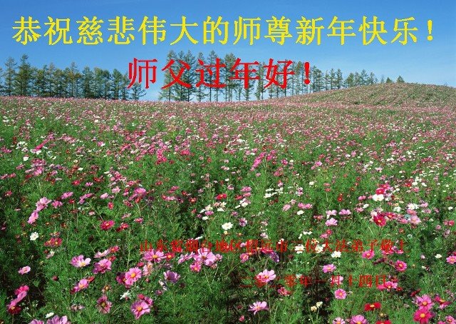 我们要紧跟师尊回家,不论前面的路有多远,有多艰难,一定要走到圆满,请师尊放心。 合十 叩拜师尊 山东省聊城市冠县大法弟子恭祝师尊新年好!