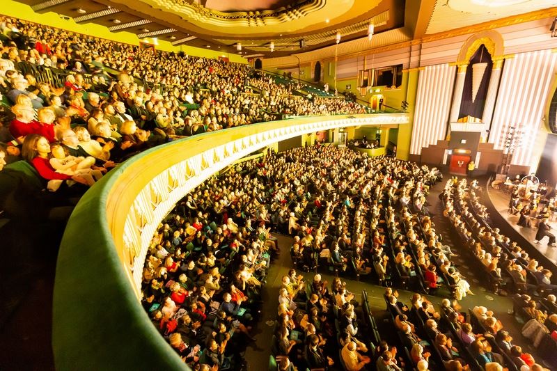 乌迪内位于意大利东北部,是商业重镇,民风古朴,是意大利古老城市之一。这里的观众对这台“世界第一秀”中呈现的敬神敬天的理念深深认同,并感觉跟中华文化产生强烈共鸣。 结束乌迪内的演出后,神韵巡回艺术团移师至意大利摩德纳(Modena),于二零二零年一月十七日至十九日,在帕瓦罗蒂大剧院(Teatro comunale Luciano Pavarotti)上演四场演出,场场大爆满。 摩德纳市是欧洲文艺复兴时期的重要城市之一,也是著名男高音歌唱家帕瓦罗蒂的故乡。历史上,欧洲和意大利的许多重大事件,都与这座城市相关联。当地神韵演出主办方表示,原本只安排两场神韵演出,但由于供不应求,于是加演一场。没想到加演的第三场演出在五天之内售罄。于是经过磋商,剧院打破惯例,决定在平常很少安排演出的周日中午十二点半再加演一场,即第四场演出,而这加演的第四场也在十天之内售罄。有观众表示,几个小时前在网上看好的票,马上就被人买走了;也有观众在网上留言,摩德纳这里不是在买票,是在抢票啊。 摩德纳的每场演出,帕瓦罗蒂大剧院金碧辉煌的五层楼包厢个个满座。身着盛装的观众纷纷从包厢内探出头来,全神贯注地注视着舞台上的一切,生怕错过一丝细节。来自意大利各行业精英和主流观众从演出中感悟至深内涵,他们表示,要向神韵艺术团致谢,赞叹神韵高超的艺术造诣令他们惊喜和惊叹,而其深厚的精神内涵给他们带来启迪。  图2:二零二零年一月十三日和十四日,神韵国际艺术团在英国曼彻斯特派雷斯剧院(Palace Theatre)的三场演出,场场爆满加座。 |