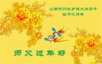 真诚感恩 善良救人 忍让和谐 好谢师尊 山西忻州各乡镇大法弟子恭祝师尊新年快乐!