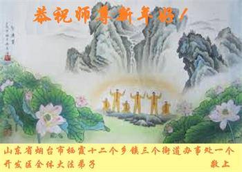山东省烟台市栖霞十二个乡镇三个街道办事处一个开发区全体大法弟子向慈悲伟大的师尊拜年!恭祝师尊新年快乐!