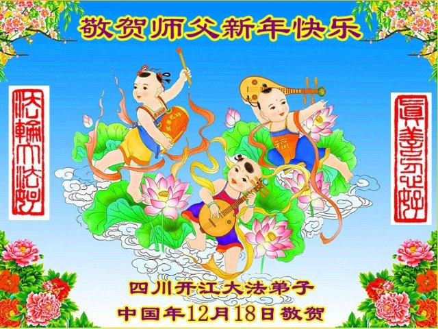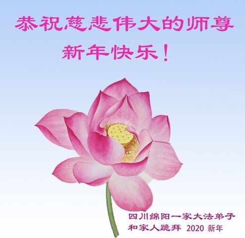师父辛苦了! 在新的一年里我要更加勇猛精進,多学法,学好法,遇事向内找,用真诚慈悲的心多救人,不辜负师父。按师父的要求,做好三件事。谢谢师父!谢谢师父! 四川绵阳一家大法弟子祝师尊新年好!
