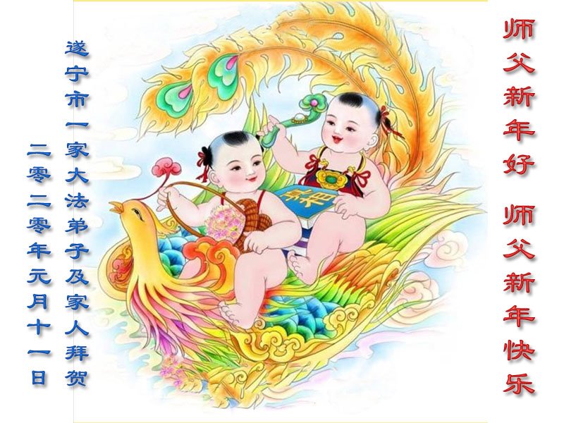 四川遂宁市一家大法弟子及家人拜贺师父新年好!师父新年快乐!