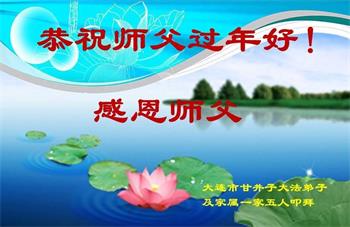 辽宁省大连大法弟子及家属一家五人恭祝师父过年好!