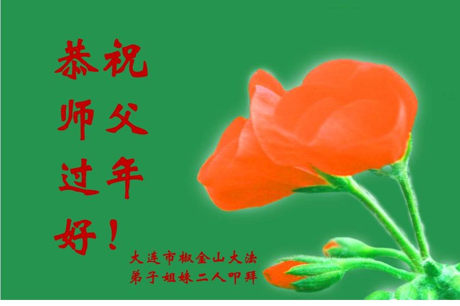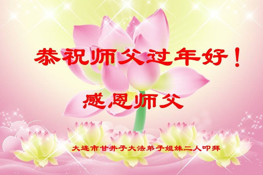 辽宁省大连甘井子大法弟子姐妹二人恭祝师父过年好!
