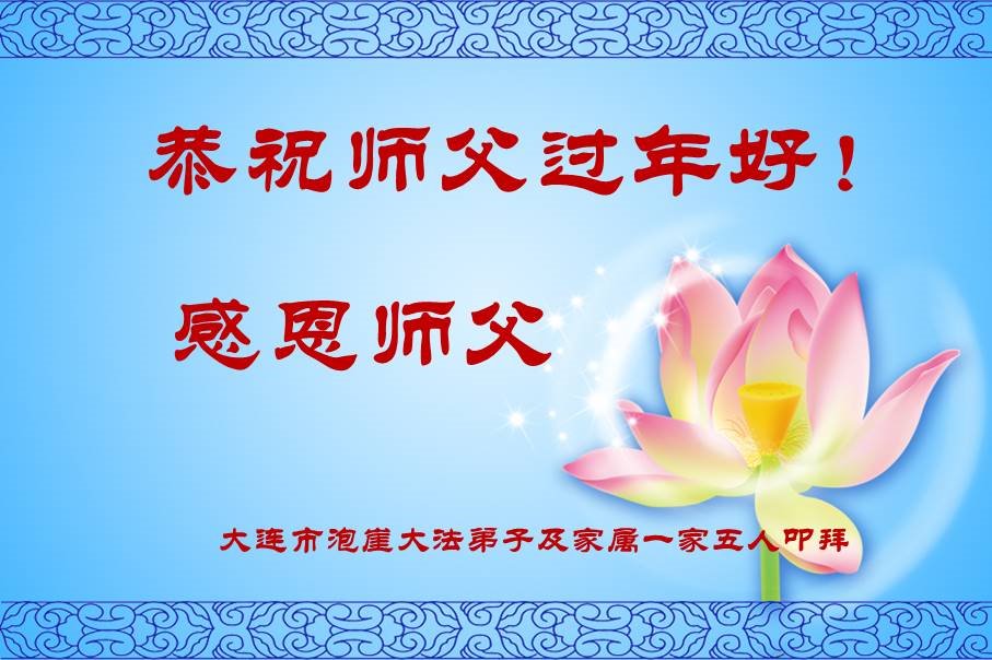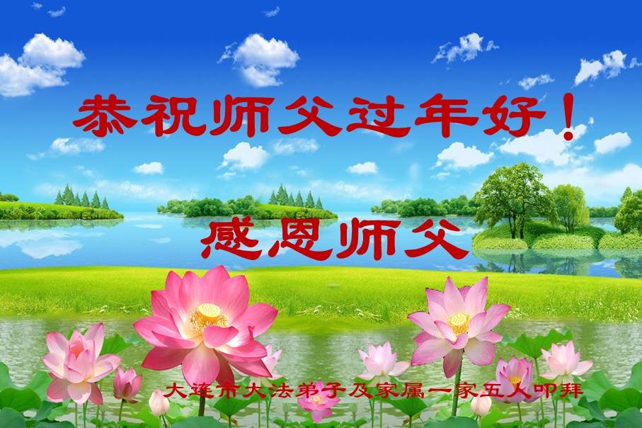 感恩师尊慈悲救度!在新的一年里,我们更加精進实修做好三件事,真正向心修、向内修,整体配合提高,整体升华。让师父宽心,少一份操劳,多一份欣慰。师父伟大!大法伟大!法轮大法好!真善忍好! 辽宁省大连一家三口大法弟子祝师尊过年好!