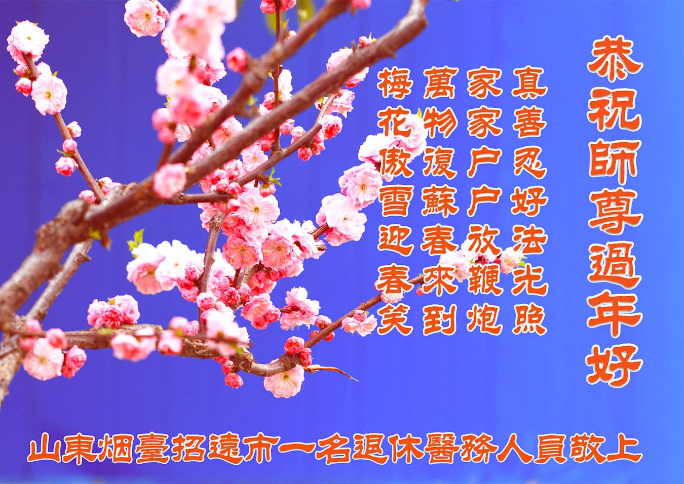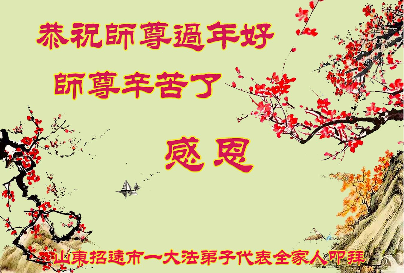 【明慧网二零二零年一月二十三日】 山东庆云大法弟子恭祝慈悲伟大的师尊过年好!