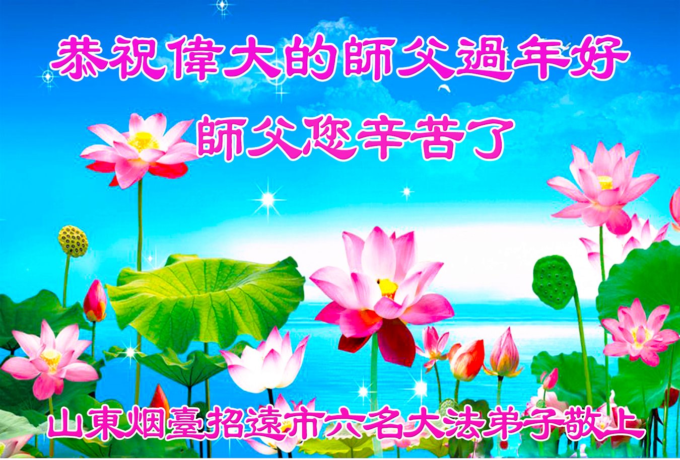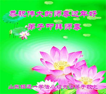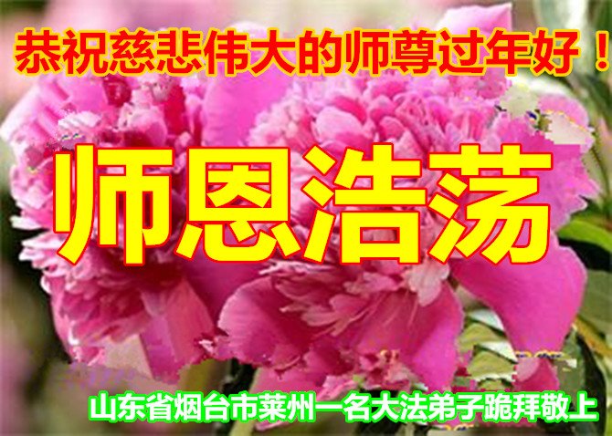 师父为了我们的修炼提高,时时都在看护着我们,点悟着我们,我们每一步的提高,师父不知付出了多少心血。我们只有精進实修,才能让师父少一点操劳,多一点欣慰。 祝师父过年好! 山东烟台招远市一大法弟子敬祝慈悲伟大的师父过年好!