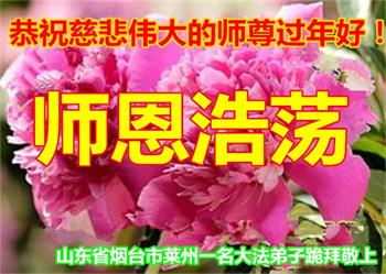 山东省烟台市莱州一名大法弟子恭祝慈悲伟大的师尊过年好! |