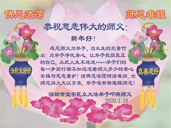 广东省深圳市南山大法弟子给师父拜年!祝慈悲伟大的师父过年好!