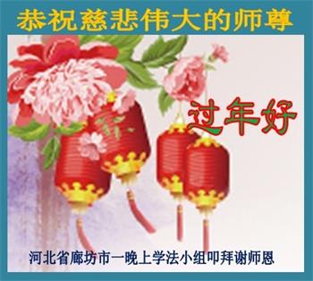 河北省廊坊市一学法小组大法弟子叩拜谢师恩 河北省廊坊市全体大法弟子恭祝慈悲伟大的师尊过年好!
