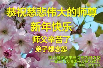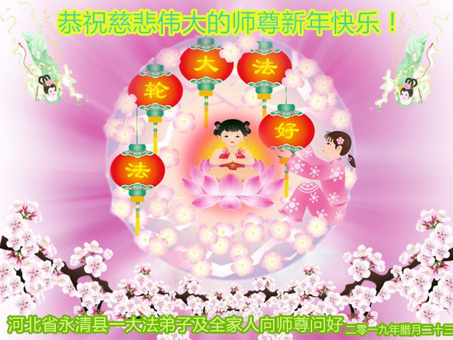 【明慧网二零二零年一月二十三日】 河北省廊坊市永清县一大法弟子及全家人恭祝师尊新年快乐!