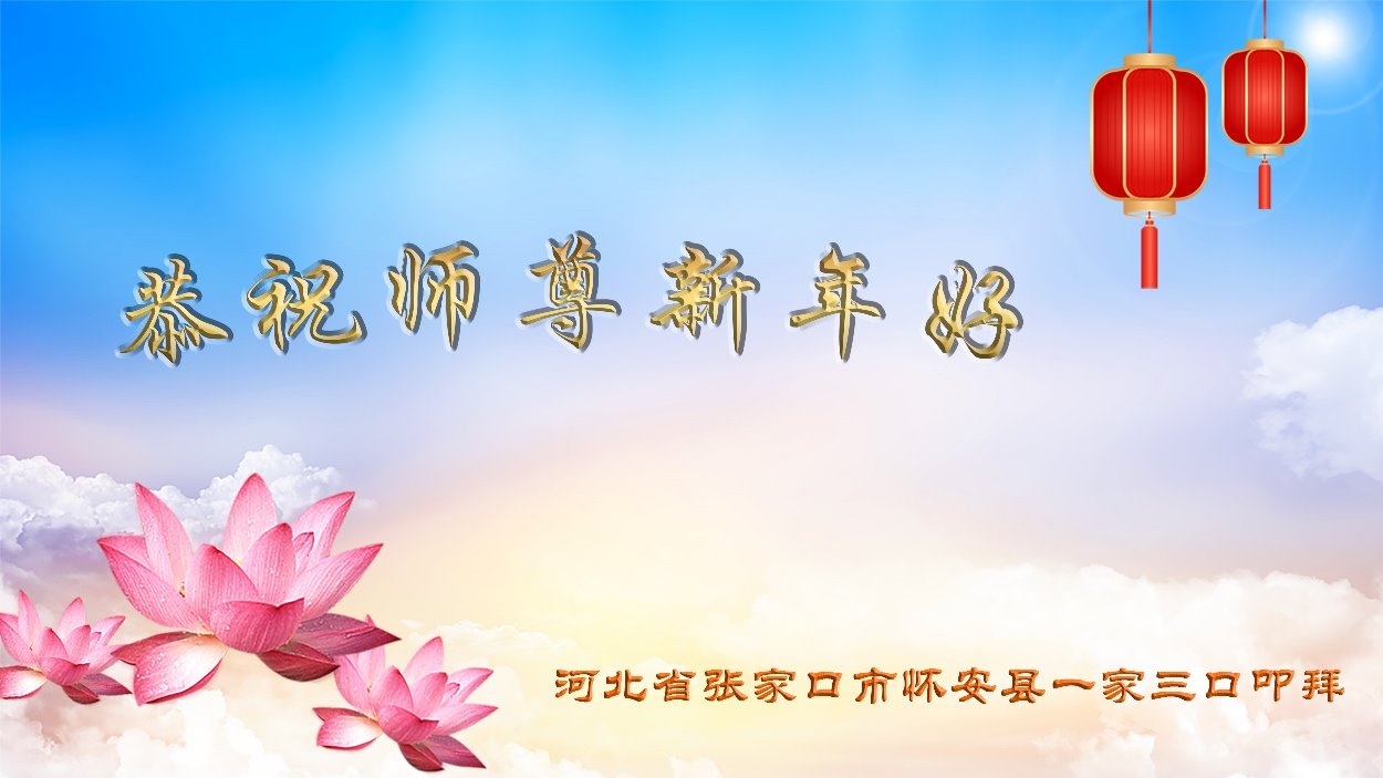 恭祝师尊新年快乐!师父辛苦了! 河北省张家口市怀安县一家三口叩拜 河北省张家口市怀来县一学法小组大法弟子恭祝师尊过年好!