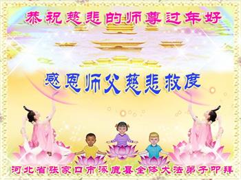 【明慧网二零二零年一月二十三日】 河北省张家口市下花园区全家大法弟子恭祝师尊过年好,谢谢师父!
