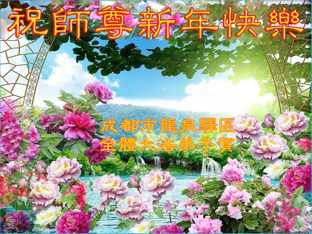 四川省成都市龙泉驿区全体大法弟子恭祝师尊新年快乐!