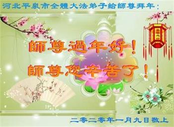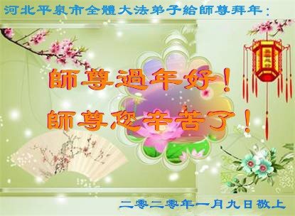 【明慧网二零二零年一月二十三日】 河北平泉市全体大法弟子给师尊拜年!恭祝师尊过年好!师尊您辛苦了!