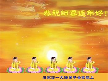 师父过年好!给师父拜年! 弟子一定听师父的话,一想起师父讲的话就特别高兴,我要修好自己,多救人。 谢谢师父的救度之恩! 河北省石家庄市裕华区大法弟子恭祝师尊过年好!