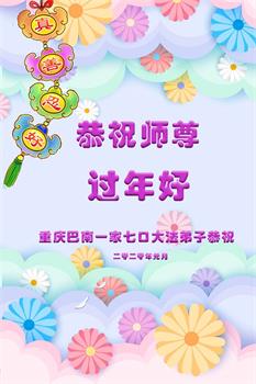 恭祝师尊过年好!感恩师父慈悲苦度!弟子们唯有精進实修,做好三件事,跟师父圆满回家。 重庆市巴南区一家七口大法弟子恭祝师尊过年好!