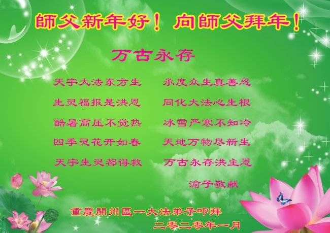 一大法弟子的儿女在新年到来之际恭祝师父过年好! 重庆市长寿区一大法弟子恭祝慈悲伟大的师父过年好!