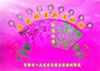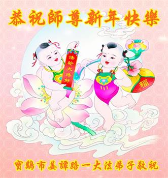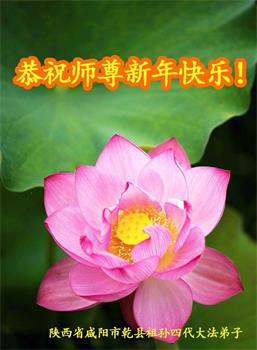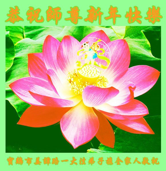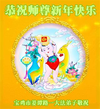 慈悲伟大的师尊新年好! 走过风风雨雨的二十年,大法弟子经历了许许多多,我也在师父的慈悲保护下走到了今天,同时亲人们也在大法“真、善、忍”的佛光普照中受益良多。弟子倍感师尊的伟大和慈悲,在此感恩师父为众生的巨大承受与付出!弟子一定走好最后的路,精進实修,不负使命。 谢谢师父! 姜谭路一大法弟子代表全家人拜谢师父!合十 陕西省宝鸡市全体大法弟子恭祝慈悲伟大的师尊新年快乐!