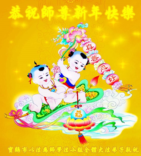 师尊您好!弟子恭祝师尊新年快乐!感谢师尊的慈悲救度!感恩师尊二十多年来对弟子的慈悲保护!新的一年又开始了,在这助师正法的最后时刻,弟子唯有多救人,做好三件事,愿师尊多一些欣慰,少一些操劳,以此回报师恩! 陕西省宝鸡市以法为师学法小组全体大法弟子恭祝慈悲伟大的师尊新年快乐!