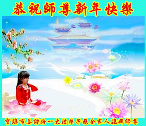 新年伊始,弟子们将一如既往的做好三件事,互相圆容,互相补充,以最纯净的心态维护好师父赐予我们的这块净土,形成整体,救度更多的众生,整体随师还! 陕西省全体大法弟子跪拜师尊! 陕西省宝鸡一大法弟子和亲人同修及小孙女衷心恭祝师尊新年快乐!