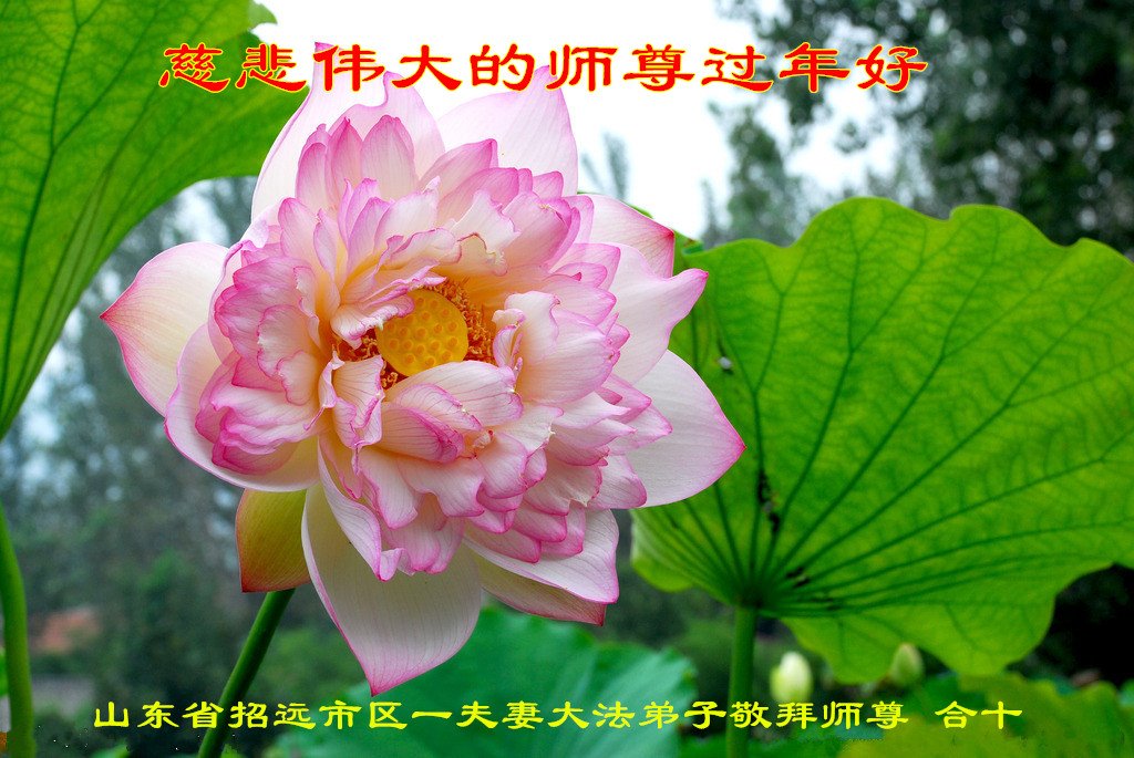 师尊您好!恭祝慈悲伟大的师尊过年好! 山东省招远市区一夫妻大法弟子叩拜师尊 合十! 山东省烟台市招远市大法弟子恭祝师尊过年好!