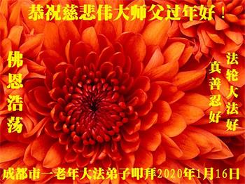 四川成都一老年大法弟子恭祝师尊新年快乐!