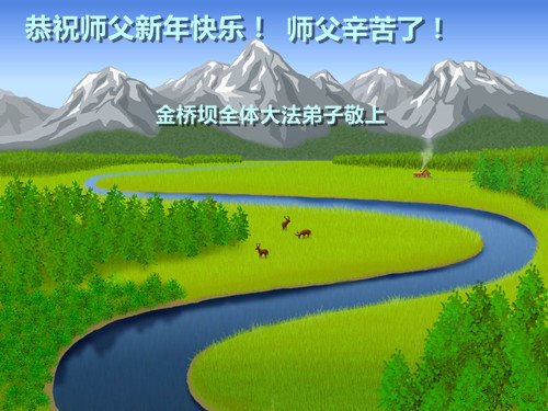 我们全体大法弟子感恩师父慈悲苦度!用人间语言是表达不了的! 千言万语汇合成一句肺腑之言,师父好!师父辛苦了! 四川省遂宁市蓬溪县金桥坝全体大法弟子向慈悲伟大的师父新年问好!