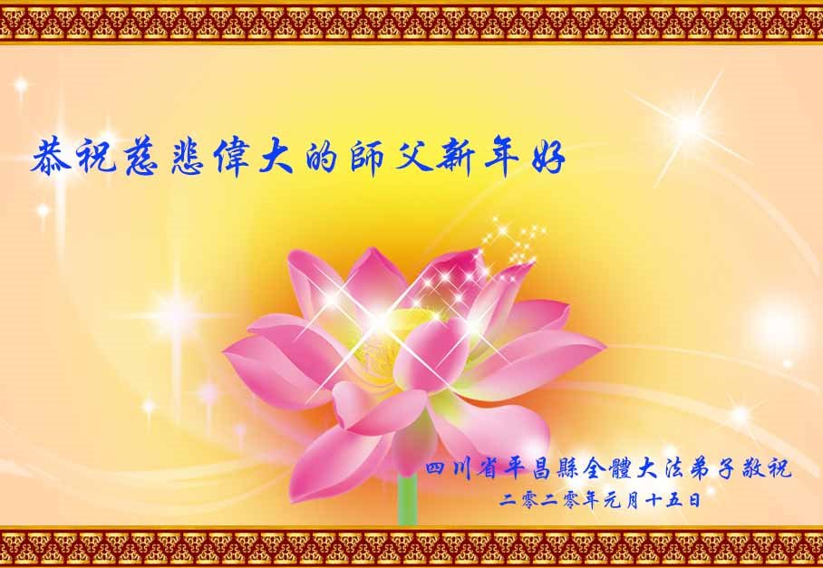 四川省平昌县一大法弟子全家敬祝 四川省巴中市平昌县一学法小组全体大法弟子恭祝慈悲伟大的师父新年快乐!