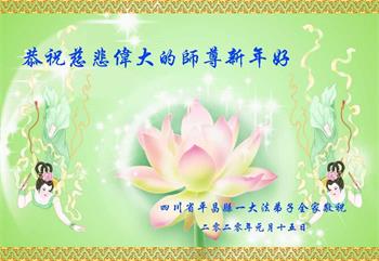 四川省遂宁市大法弟子恭祝慈悲伟大的师尊中国新年快乐!