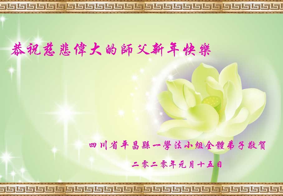 四川省平昌县一学法小组全体大法弟子敬贺 四川遂宁市大英县全体大法弟子向慈悲伟大的师父新年问好!