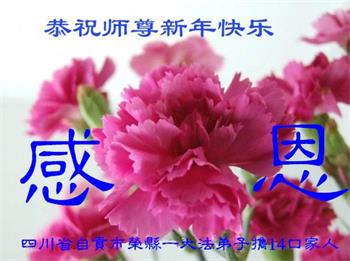 四川省自贡市一大法弟子携十四口家人恭祝师尊新年快乐!