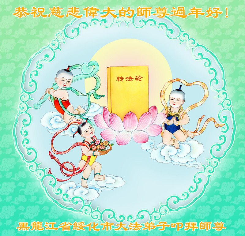 感谢慈悲伟大的师尊救度!师尊您辛苦了!请师尊放心,我们学法小组全体要珍惜这万古机缘,多学法、学好法,用法时时对照自己,随师回家。 黑龙江省绥化市一学法小组大法弟子恭祝慈悲伟大的师尊大年快乐!