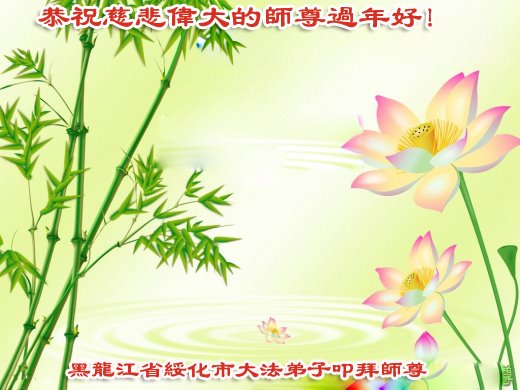 感谢师尊的慈悲救度!我们母女俩人在新的一年里要更加精進,让师尊少操心,完成使命,跟师尊回家。 黑龙江省绥化市大法弟子恭祝慈悲伟大的师尊过年好!