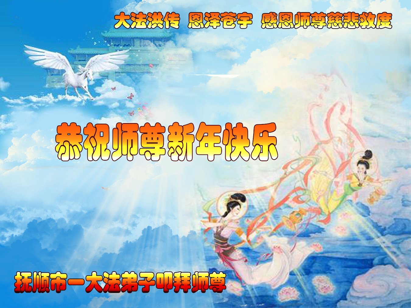 辽宁省抚顺市大法弟子恭祝慈悲伟大的师尊过年好!