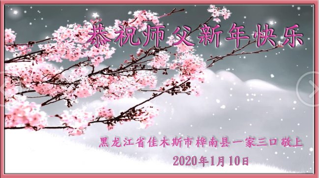 【明慧网二零二零年一月二十三日】 黑龙江省佳木斯市富锦市李氏家族敬祝师父新年快乐!师父您辛苦了