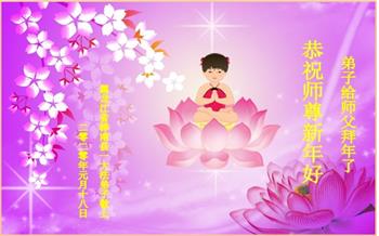 师尊您好!弟子在您的佛恩浩荡保护下走过了二十二年的修炼历程。十六年前,弟子在一次车祸的死亡线上,是师父您给了弟子第二次生命。二十二年中,您不仅看护着弟子,弟子的家人不修炼的丈夫也受益多多,家人只是相信大法,二十二年中也在师父保护当中大、小难被师父一次次化解。弟子深知,这一切都来源于师父的巨大付出。 弟子与家人用任何语言都无法表达师父的佛恩浩荡!借此新年之际,弟子献上一颗诚挚感恩的心遥拜师尊!向伟大的师尊叩拜、叩拜、再叩拜!弟子一定精進不停,做好三件事回报师恩!再次叩拜!问候一声:师父过年好!师父您辛苦了! 合十 黑龙江佳木斯西片大法弟子恭祝师父新年快乐!